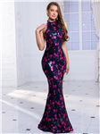 Elegantní večerní šaty s výšivkami a bočním rozparkem
