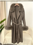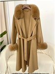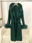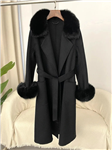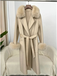 Luxusní vlněný dámský kabát s kožíškem z lišky