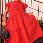 Bavlněné Maxi šaty s výstřihem do V a dlouhým rukávem