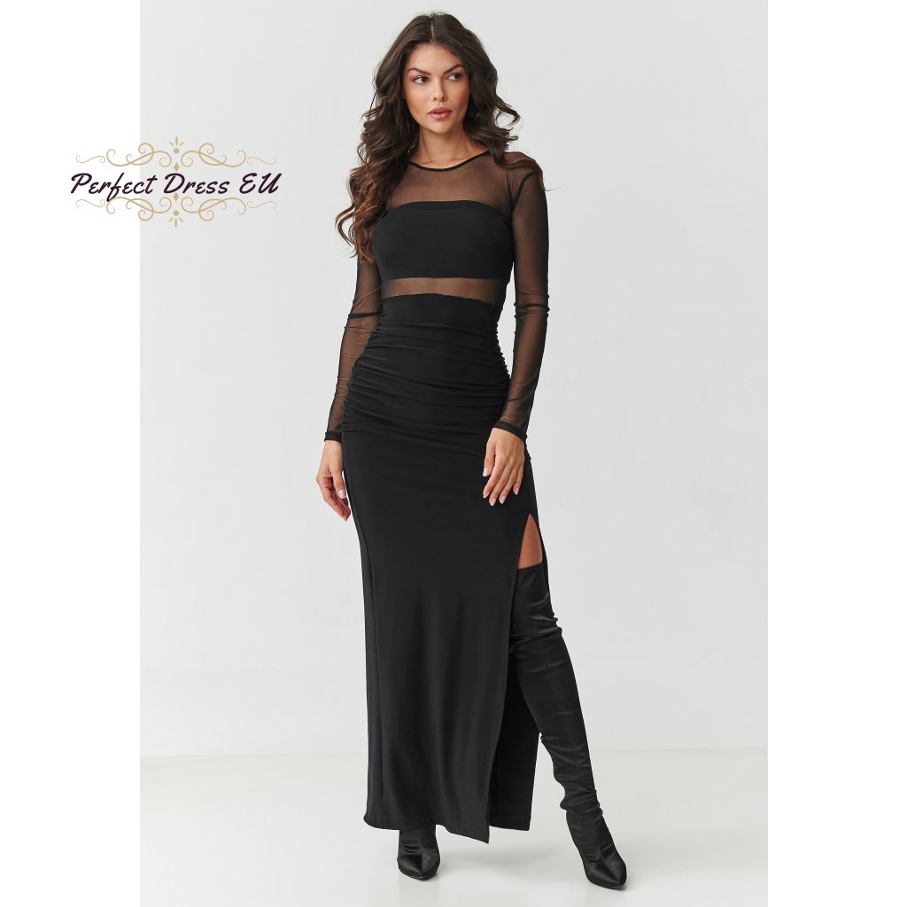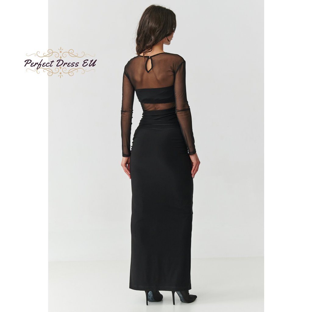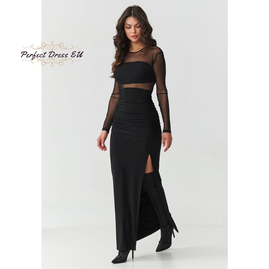 Vstupte do světa elegance, která okouzlí na první pohled. Tyto černé síťované maxi šaty jsou určeny ženám, které se nebojí zazářit a chtějí se cítit naprosto jedinečné. Přiléhavý střih dokonale zdůrazňuje siluetu, zatímco decentní řasení v pase tvaruje postavu a dodává jí smyslnou lehkost. Průsvitný vrchní díl z jemné síťoviny dodává šatům tajemný charakter, kde se elegance setkává s odvážností. Samostatný vrchní díl pod tylem lze navíc nosit i s jinými styly. Smyslný rozpark odhaluje nohu s každým krokem a dodává šatům ženský nádech. Pozlacený knoflík vzadu slouží nejen praktickému účelu, ale také dodává šatům nádech šperku, který krásně kontrastuje s tmavě černou látkou. Tento decentní detail dodává šatům luxusní vzhled a zároveň činí každý detail jedinečným. Nejsou to jen obyčejné večerní šaty – jsou to šaty, ve kterých se budete cítit, jako by se na vás upíraly všechny oči. Jsou ideální na svatbu, ples, maturitní ples nebo elegantní večeři a vždy vás donutí vyniknout stylem a sebevědomím. Výrazné, fascinující a perfektní pro ženu, která chce udělat ohromující dojem a zanechat trvalou vzpomínku – stejně nesmazatelnou jako samotné šaty.Rozměry produktu: