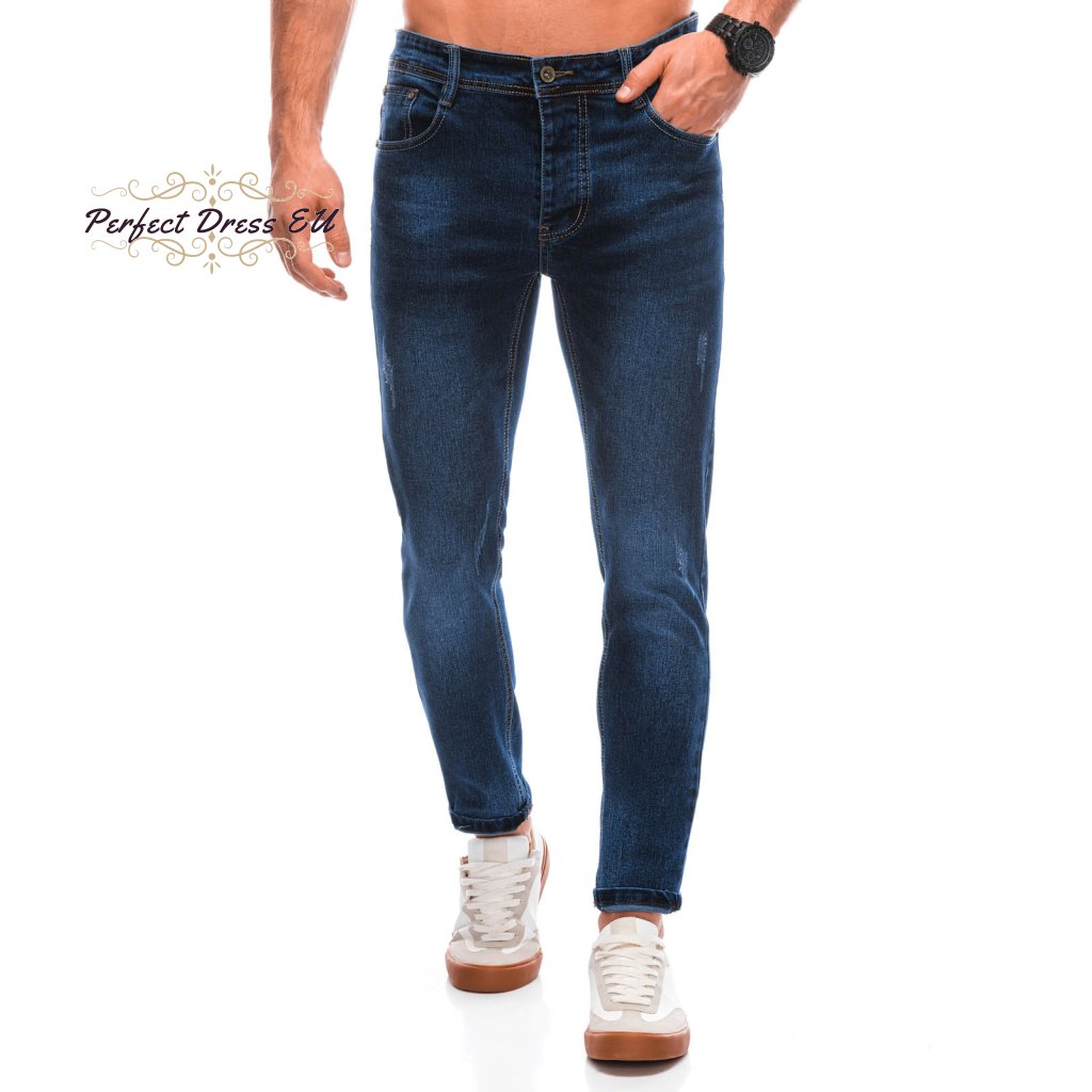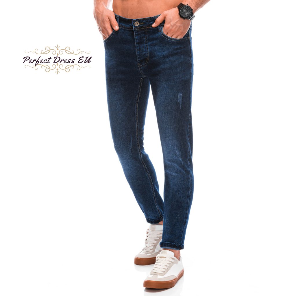 Pánské slim fit džíny s prošíváním na kolenou - V2 OM-PADP-0109