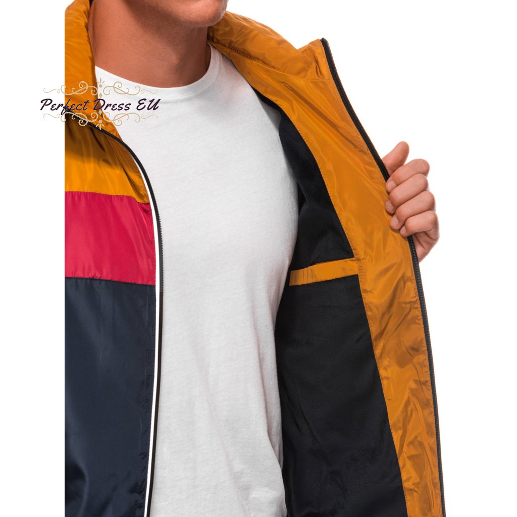 Men's transitional jacket with hood Two side zippered pockets Perfect for everyday styling Material: 75% acrylic, 25% polyester Color: mustard Model height: 179 cm. The model presents the product in size: LDoplňkové parametry