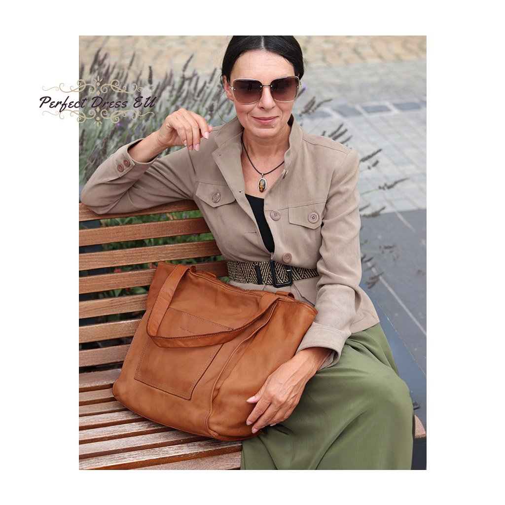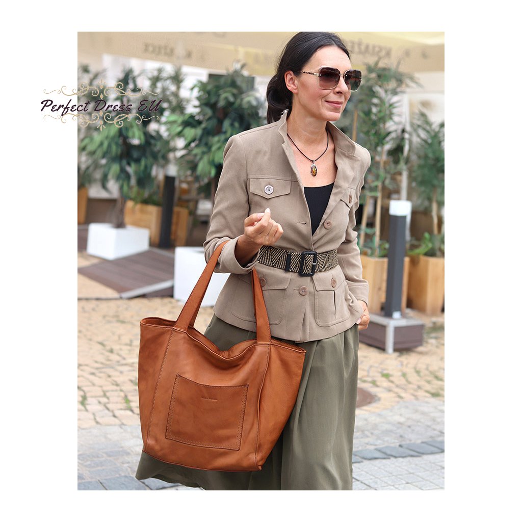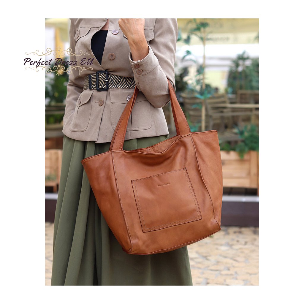 Vysoce kvalitní, měkká teletina, ze které je tato kožená shopper bag vyrobena, zaručuje nejen jedinečný vzhled, ale také odolnost po mnoho let, což z ní dělá neodmyslitelný prvek vašeho šatníku na mnoho sezón. Kůže pochází z italských koželužen , kde se získává jako vedlejší produkt potravinářského průmyslu v souladu s filozofií zero waste. Každá velká nákupní taška je jedinečná díky textuře kůže, jedinečnému procesu barvení (po ušití tašky jako celku) a zušlechtění kůže. Nerovnoměrnost struktury, jemné záhyby, třmeny a barevné rozdíly jsou přirozené a dodávají našim nákupním taškám šarm a eleganci. Prokazují pravost produktu!
