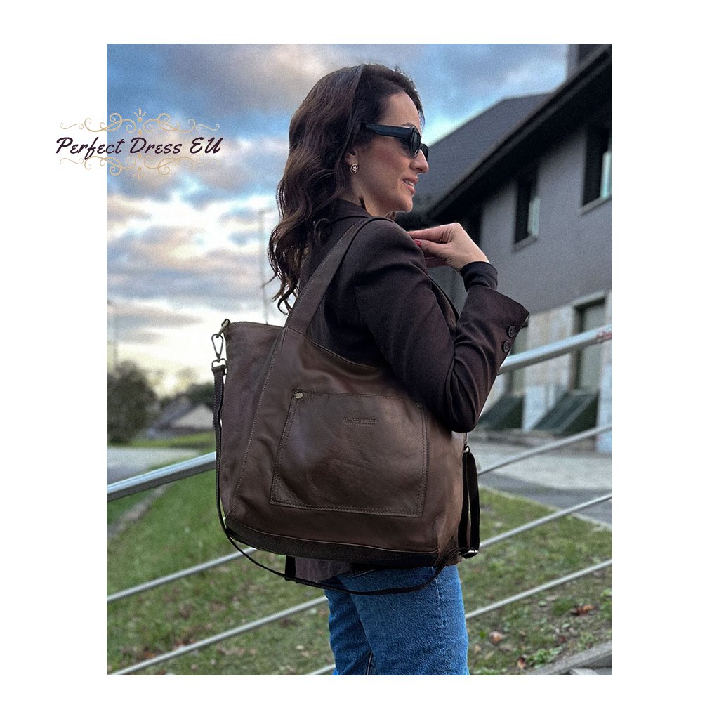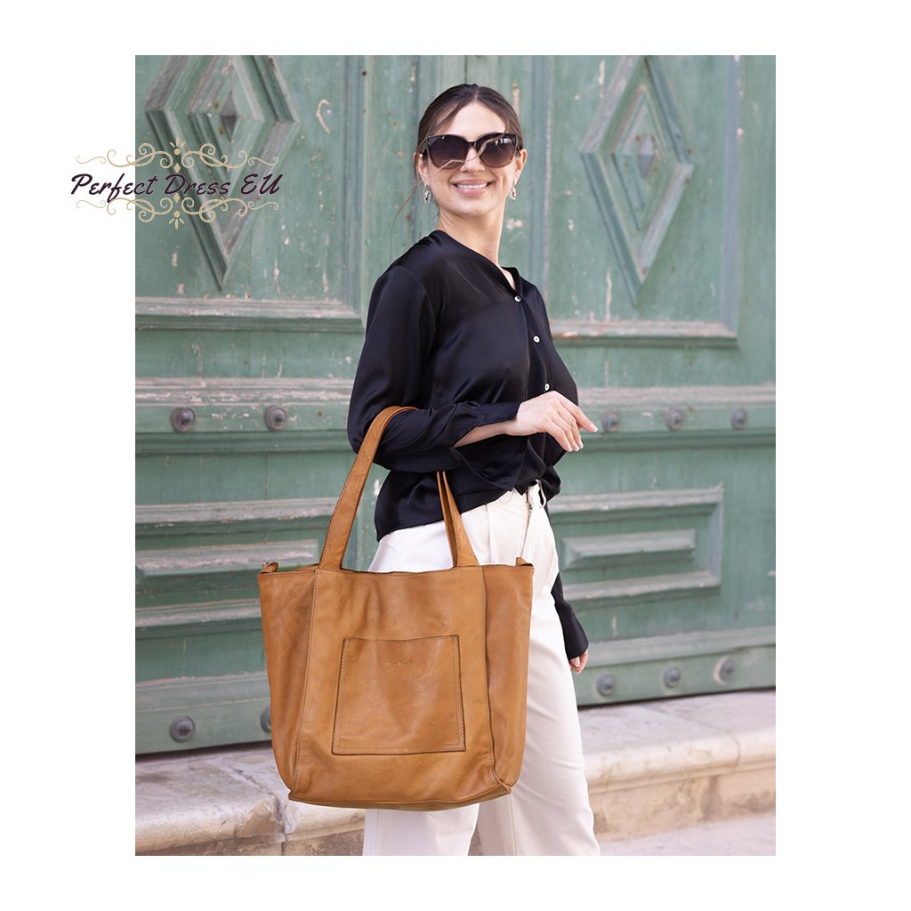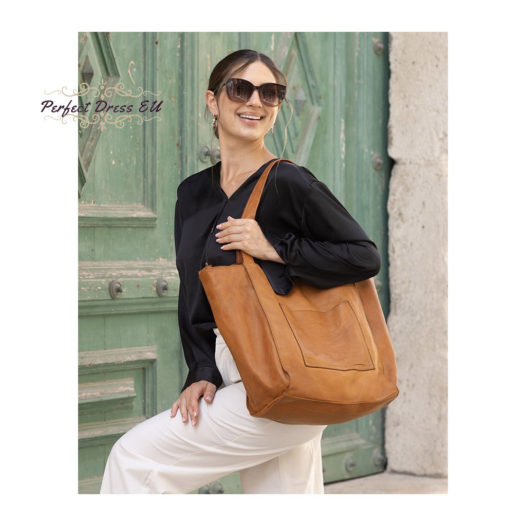 Vysoce kvalitní, měkká teletina, ze které je tato kožená shopper bag vyrobena, zaručuje nejen jedinečný vzhled, ale také odolnost po mnoho let, což z ní dělá neodmyslitelný prvek vašeho šatníku na mnoho sezón. Kůže pochází z italských koželužen , kde se získává jako vedlejší produkt potravinářského průmyslu v souladu s filozofií zero waste. Každá velká nákupní taška je jedinečná díky textuře kůže, jedinečnému procesu barvení (po ušití tašky jako celku) a zušlechtění kůže. Nerovnoměrnost struktury, jemné záhyby, třmeny a barevné rozdíly jsou přirozené a dodávají našim nákupním taškám šarm a eleganci. Prokazují pravost produktu!