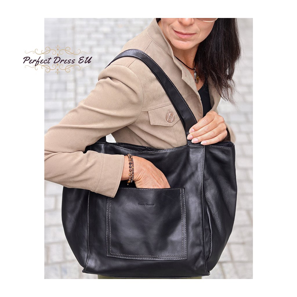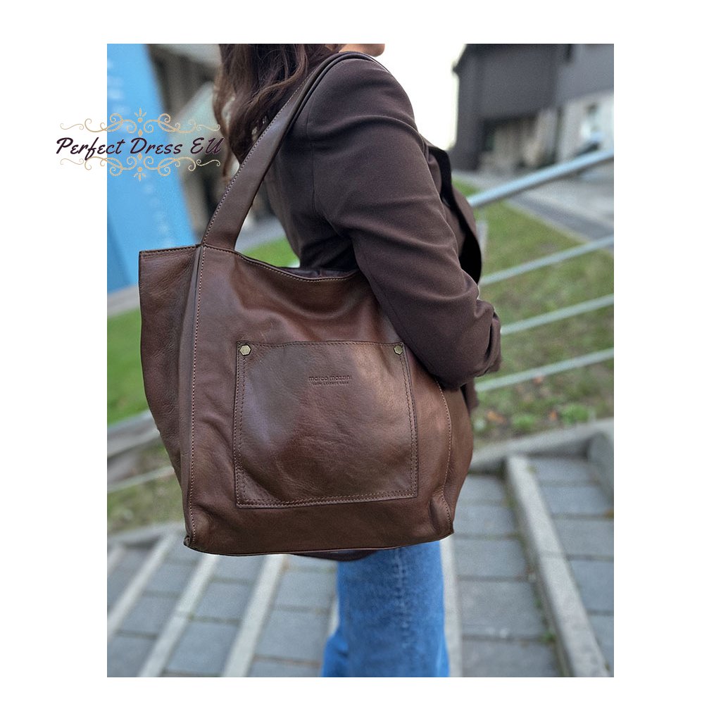 Naše černá nákupní taška od Marco Mazzini je perfektní kombinací stylu a funkčnosti. Vyrobeno z nejkvalitnější, měkké přírodní kůže, je módním a elegantním doplňkem pro moderní ženu, která si cení jak praktičnosti, tak sofistikovaného stylu.