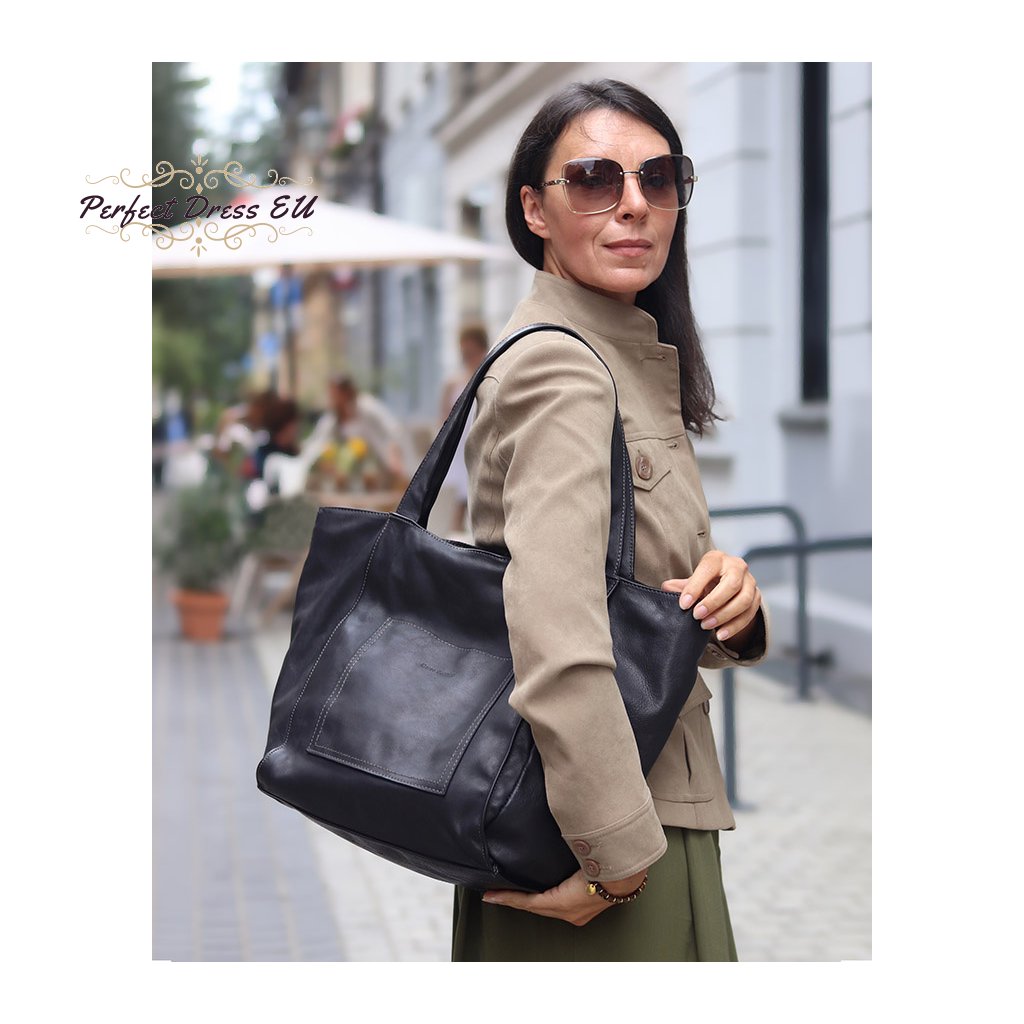 Černá shopper kabelka – pevně vyrobená z měkké teletiny!