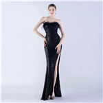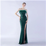 Dlouhé plesové šaty typu rybí ocas s volánovými rukávy