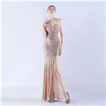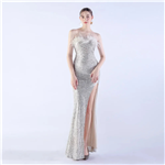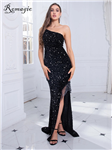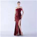 Flitrové večerní šaty s krátkými volánovými rukávy