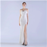 Večerní šaty s výstřihem a krátkým průsvitným rukávem