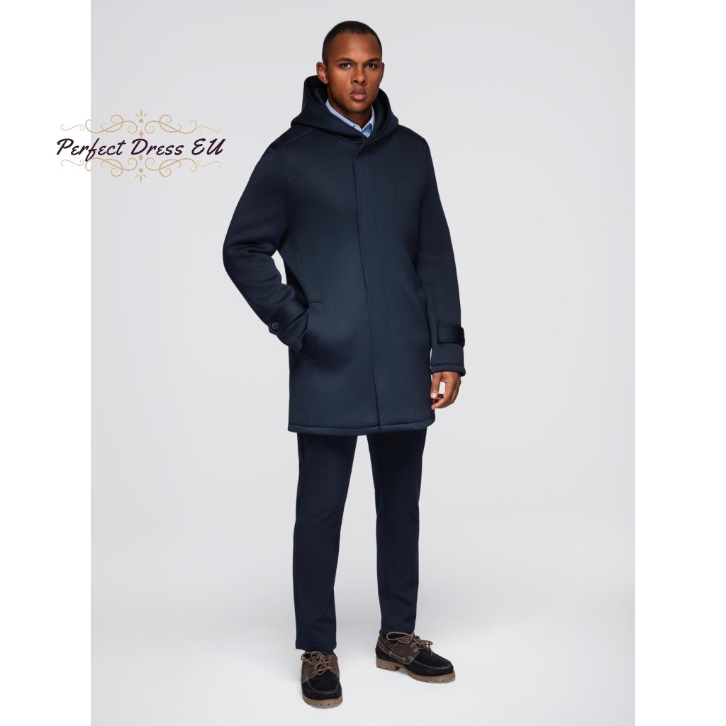 Minimalistický pánský kabát střední délky s kapucí V5 OM-COLC-0144