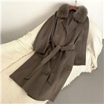 Elegantní kabát s velkým límcem a zlatým páskem M407