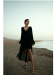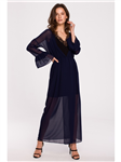 Dlouhé šaty s volánky, výstřihem vpředu a vzadu 77001-3