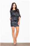Originální šaty z elastické hladké lehce lesklé látky. Má výstřih do U, 3/4 manžetové rukávy, kapsy a charakteristickou širokou gumu v pase. Je ideální pro každou postavu.Doplňkové parametry