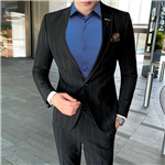 Třídílný oblek s proužkem – stylový set pro svatby a oslavy