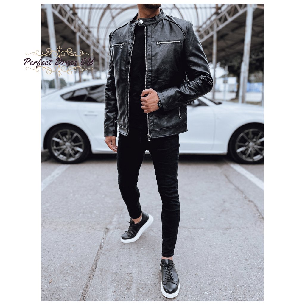 Pánská stylová kožená bunda v biker stylu TX4713 - Černá M