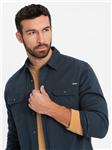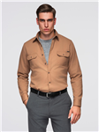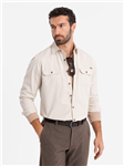 Pánská lněná košile se stojáčkem a kapsou REGULAR FIT - V1 OM-SHCS-0161