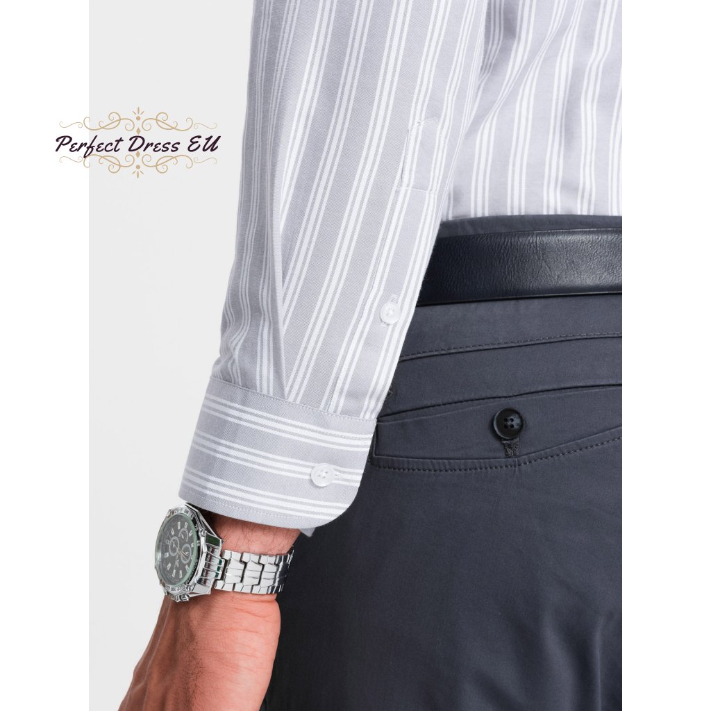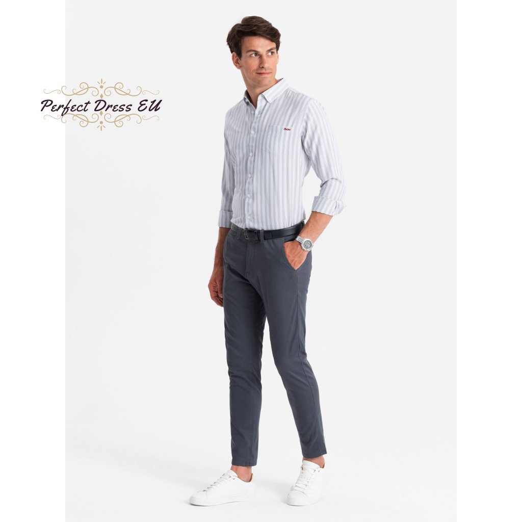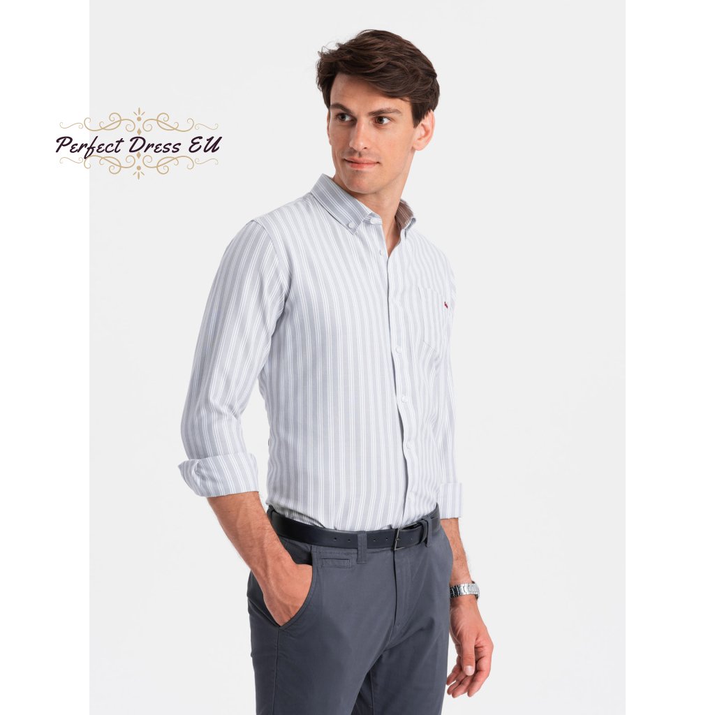Pánská košile REGULAR FIT s bílými pruhy a kapsou - V1 OM-SHOS-0171