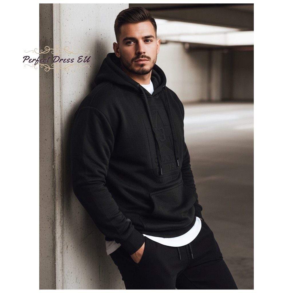 Pánská mikina s reliéfním 3D potiskem na přední straně, vyrobená z měkkého materiálu s fleecovou izolací na vnitřní straně. Design se vyznačuje moderním vzhledem s reliéfním motivem hvězdy a nápisem ve stylu univerzity. Má praktickou nastavitelnou kapuci se stahovací šňůrkou, klokaní kapsu a elastické manžety a lem.