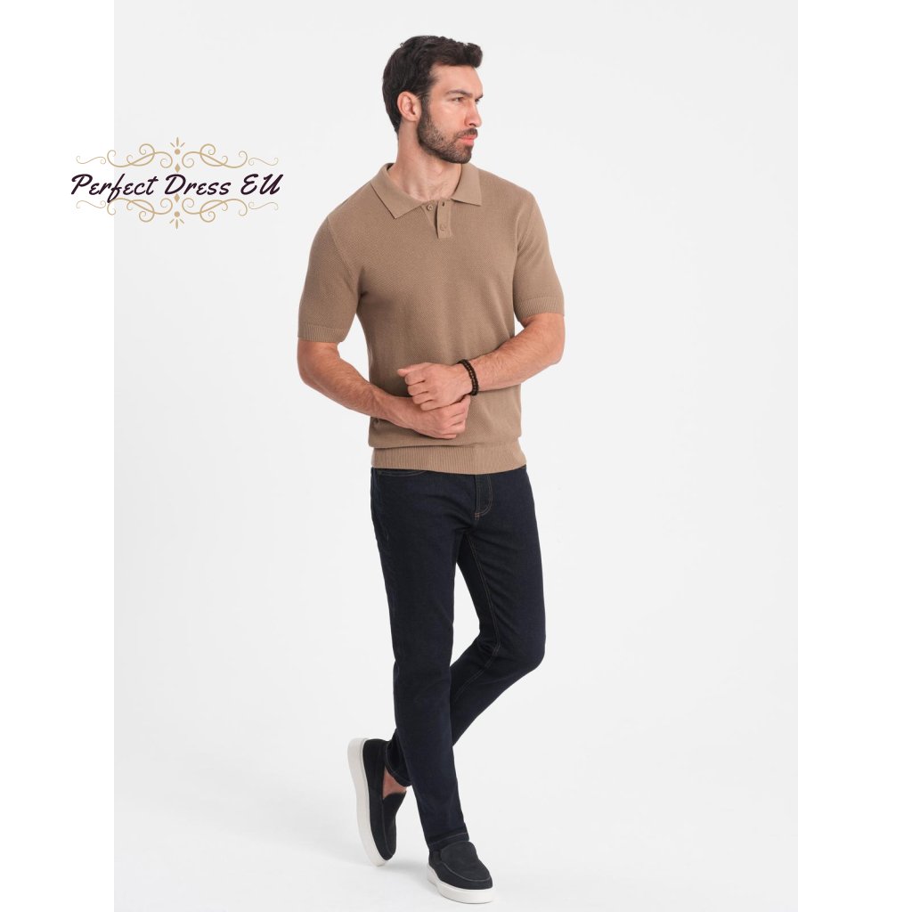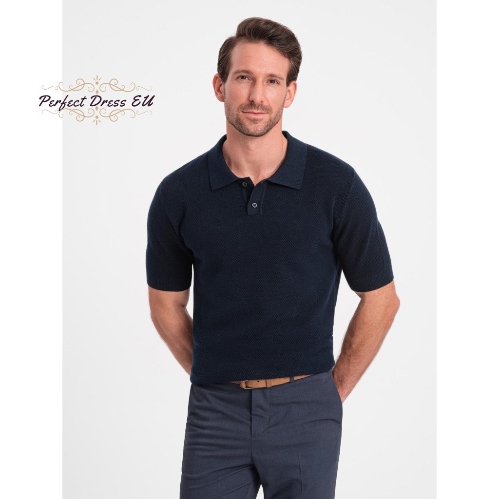 Pánské bavlněné polo tričko se strukturovaným úpletem - V1 OM-POSS-0117
