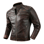 Motorkářská bunda z olejované jehněčí kůže s kapucí
