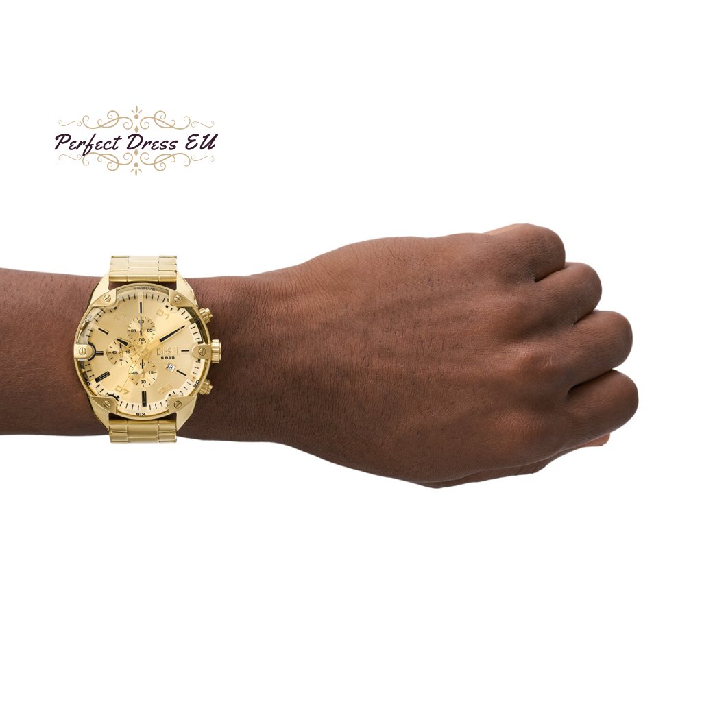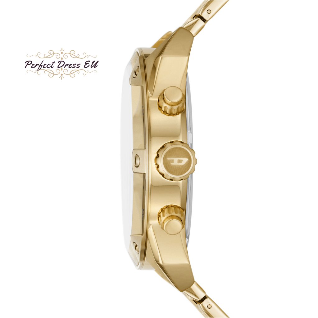 Pánské hodinky Diesel Mega Chief DZ4608 pohání japonský quartz mechanismus, napájený baterií s průměrnou životností 2 roky. Tmavý ciferník hodinek chrání minerální sklíčko velmi odolné proti poškrábání. Pouzdro i náramek jsou vyrobeny z nerezové oceli, která zaručuje dlouhodobou odolnost.Mezi výhody hodinek DIESEL DZ4608 patří: datumovka v podobě okénka na ciferníku umístěné na 4:00, kde můžete odečíst aktuální datum a stopky v podobě chronografu měřící čas až 60 minut s přesností 1/10 sekundy. Hodinky mají voděodolnost 5TM, tedy 50m.