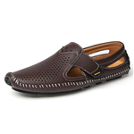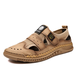 Kožené pánské boty letní uzavřené sandály s pásky a prošíváním