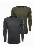 Sada 2 pánských triček SLIM FIT s dlouhým rukávem, logem a výstřihem do V - mix / V1 Z87