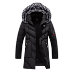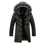 Pánská prošívaná dlouhá bunda s odepínací kapucí