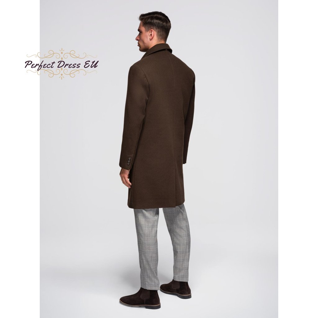Pánský dlouhý jednořadý kabát s límcem V1 OM-COWC-0135