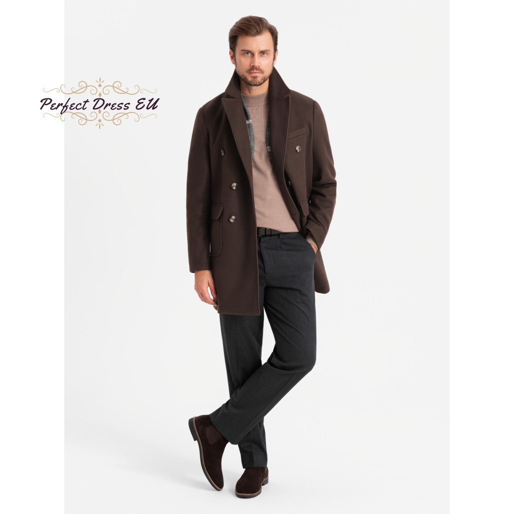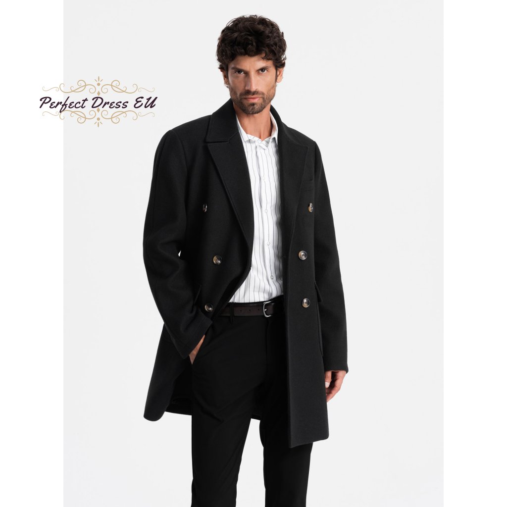 Pánský dvouřadý kabát s ozdobnými knoflíky - V1 OM-COWC-0109