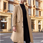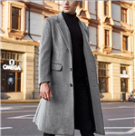 Pánský vlněný kabát midi délky s límcem pro společenské příležitosti