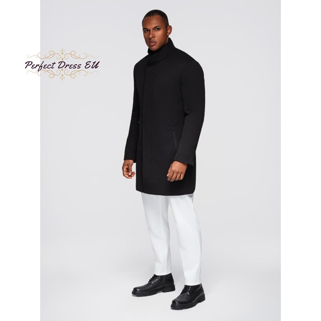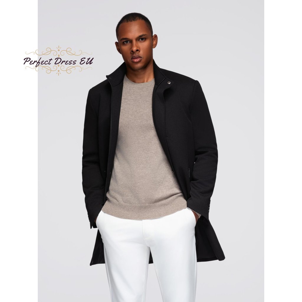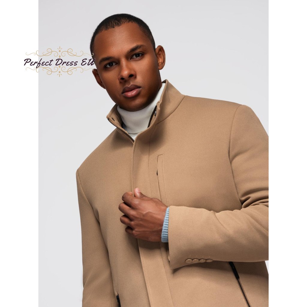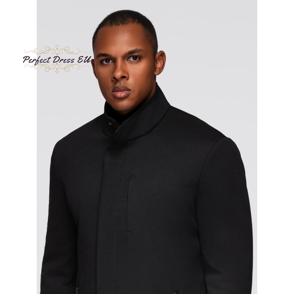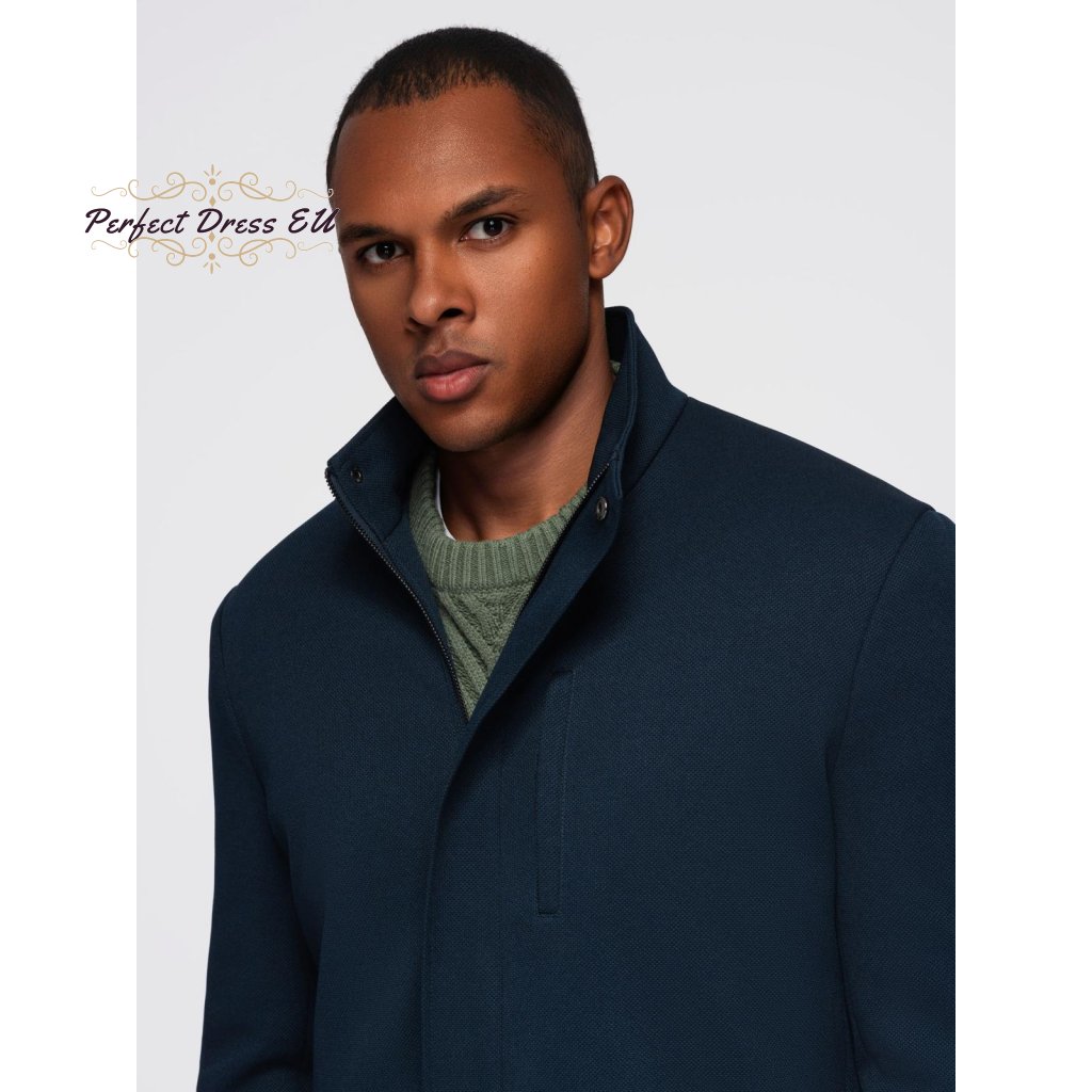 Pánský kabát se strukturovaným vzhledem a stojáčkem V1 OM-COWC-0136