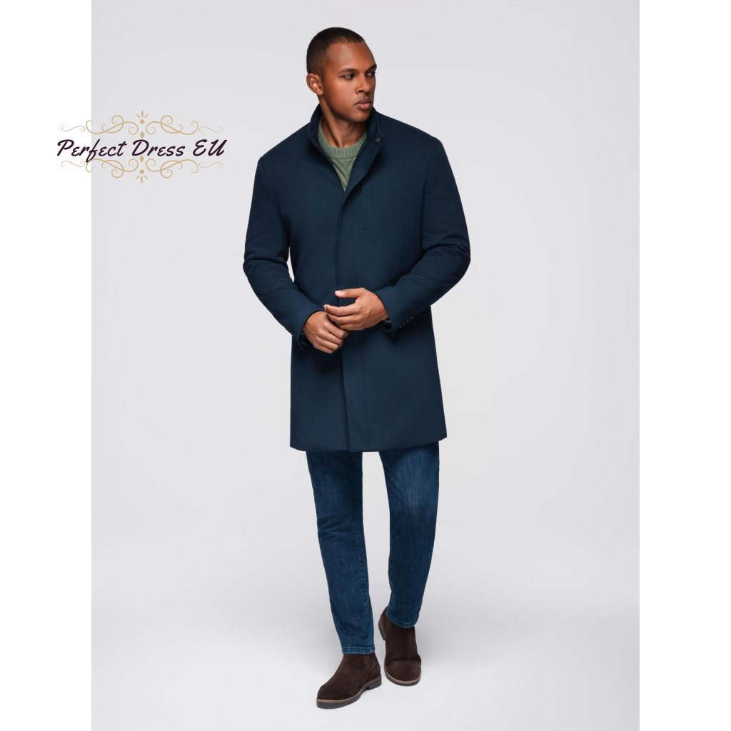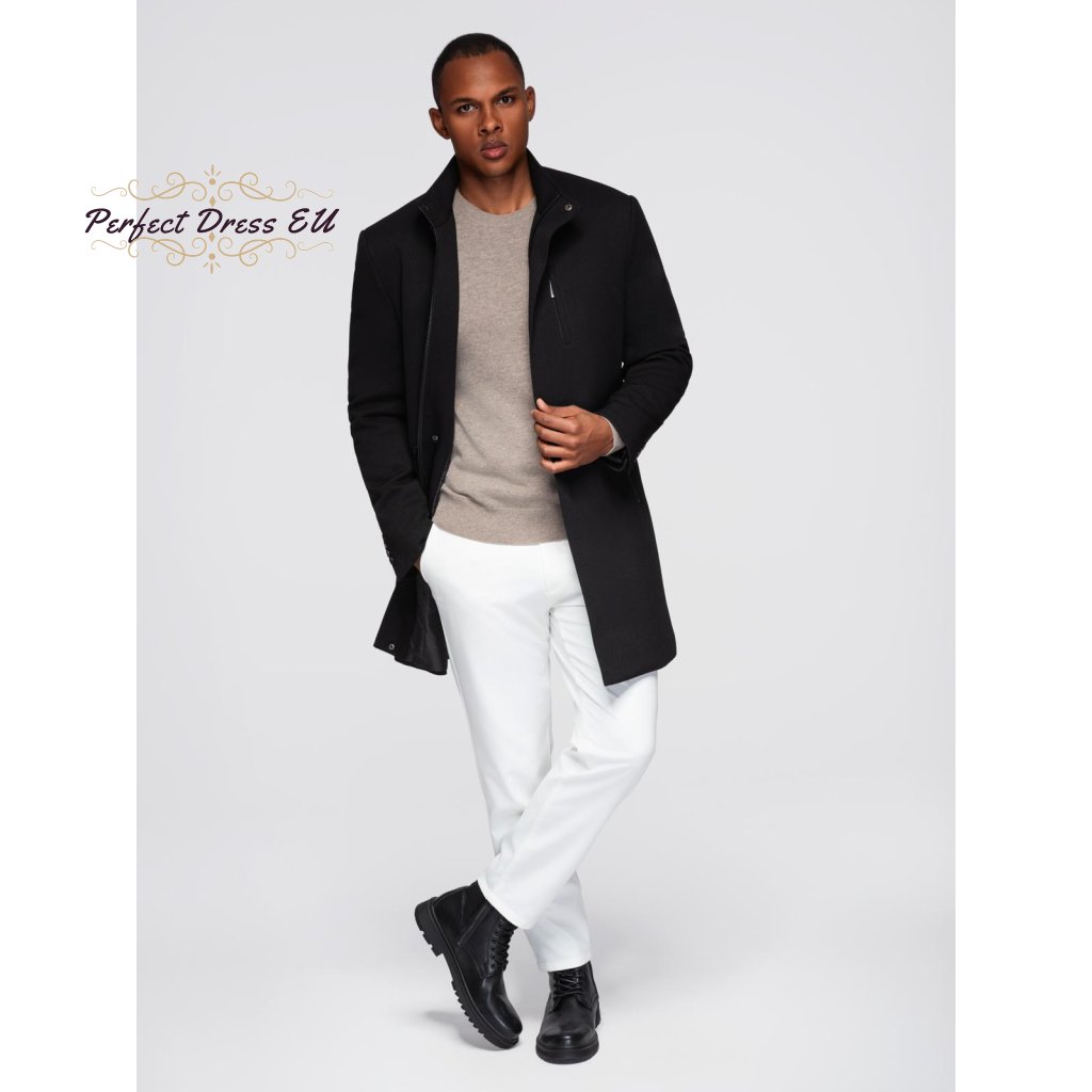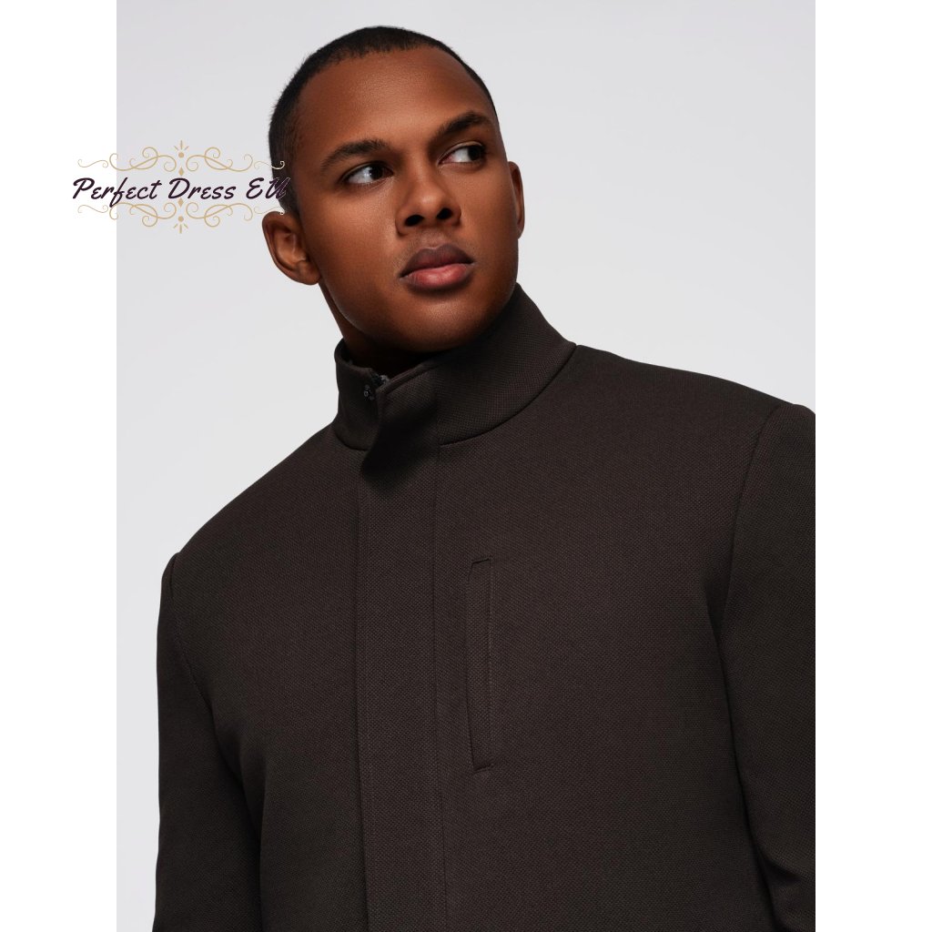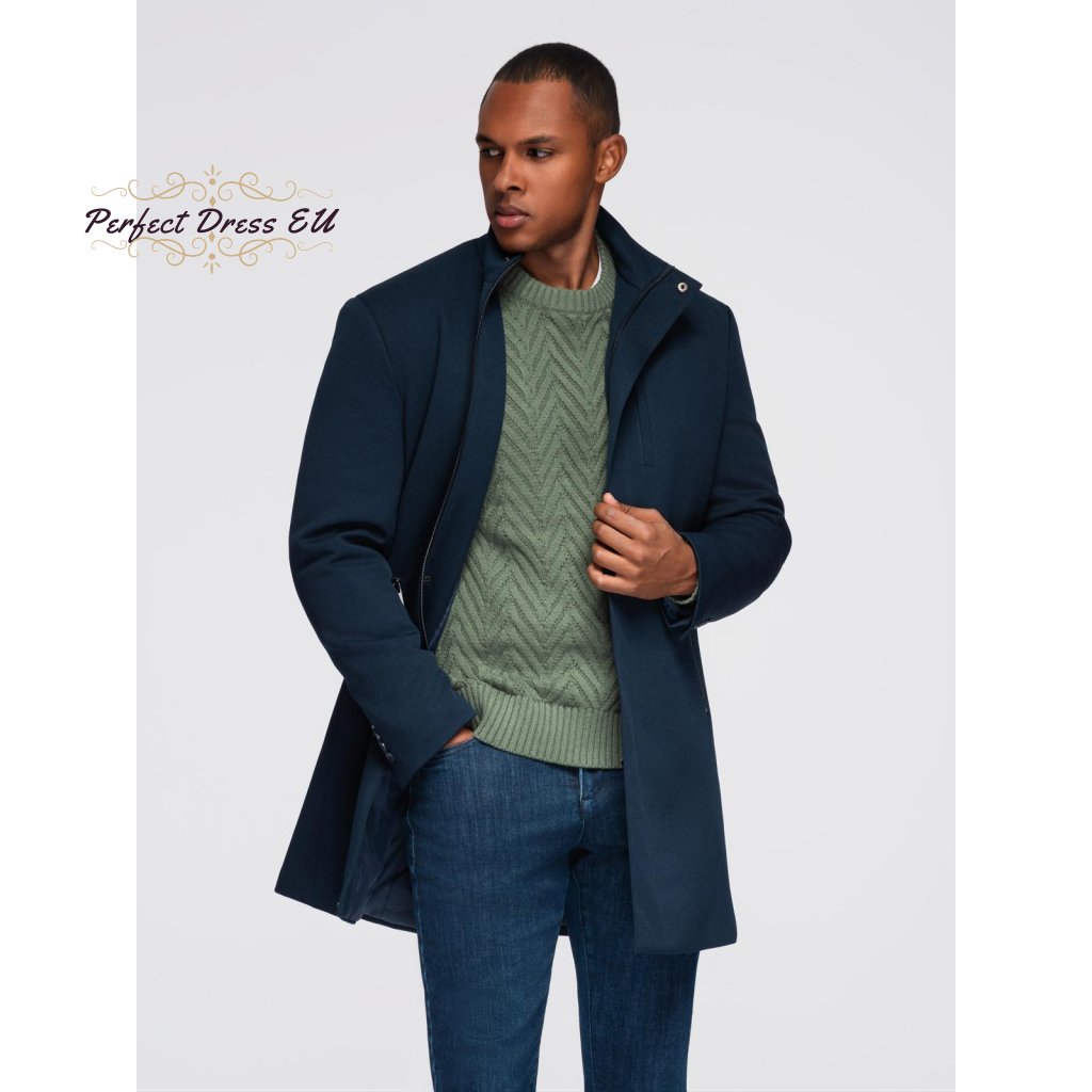 Pánský kabát se strukturovaným vzhledem a stojáčkem V1 OM-COWC-0136