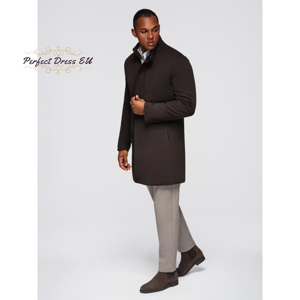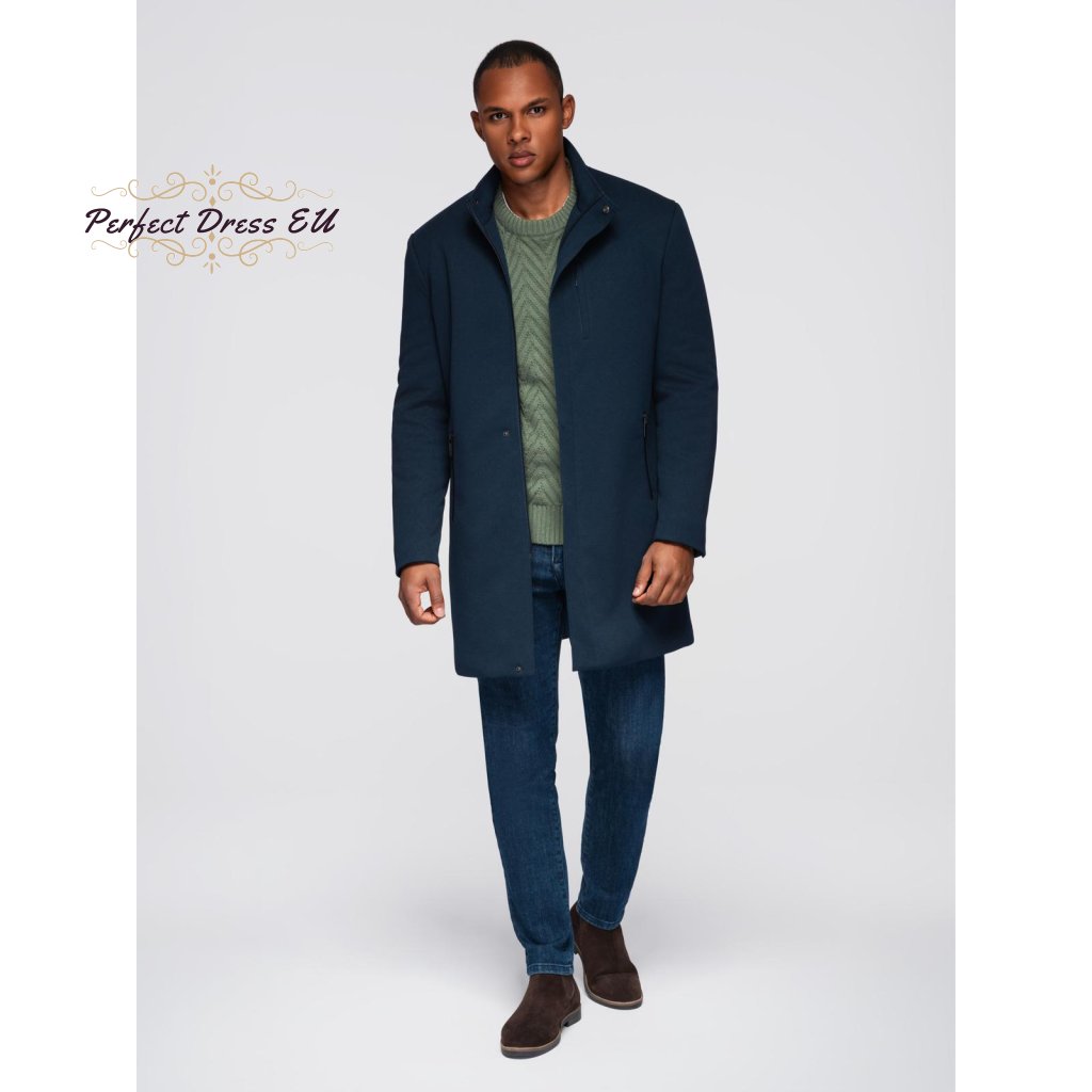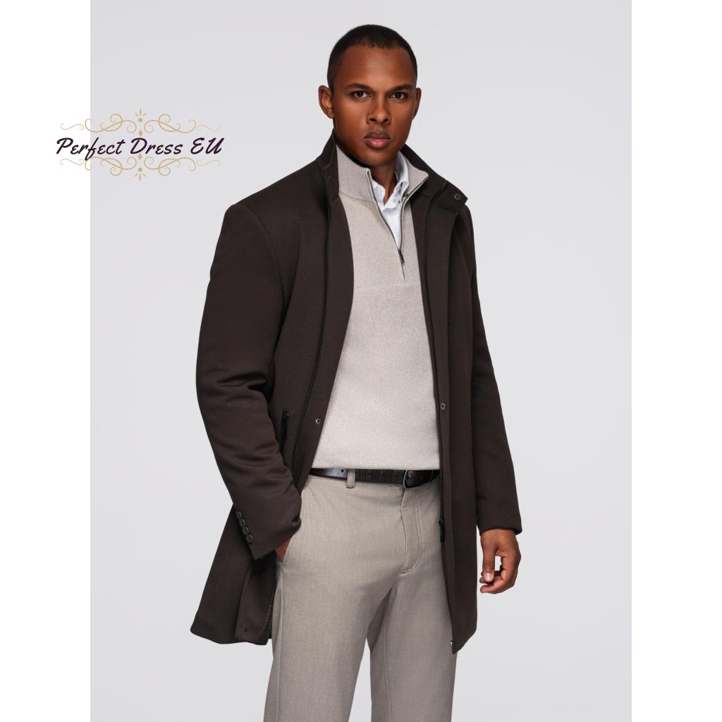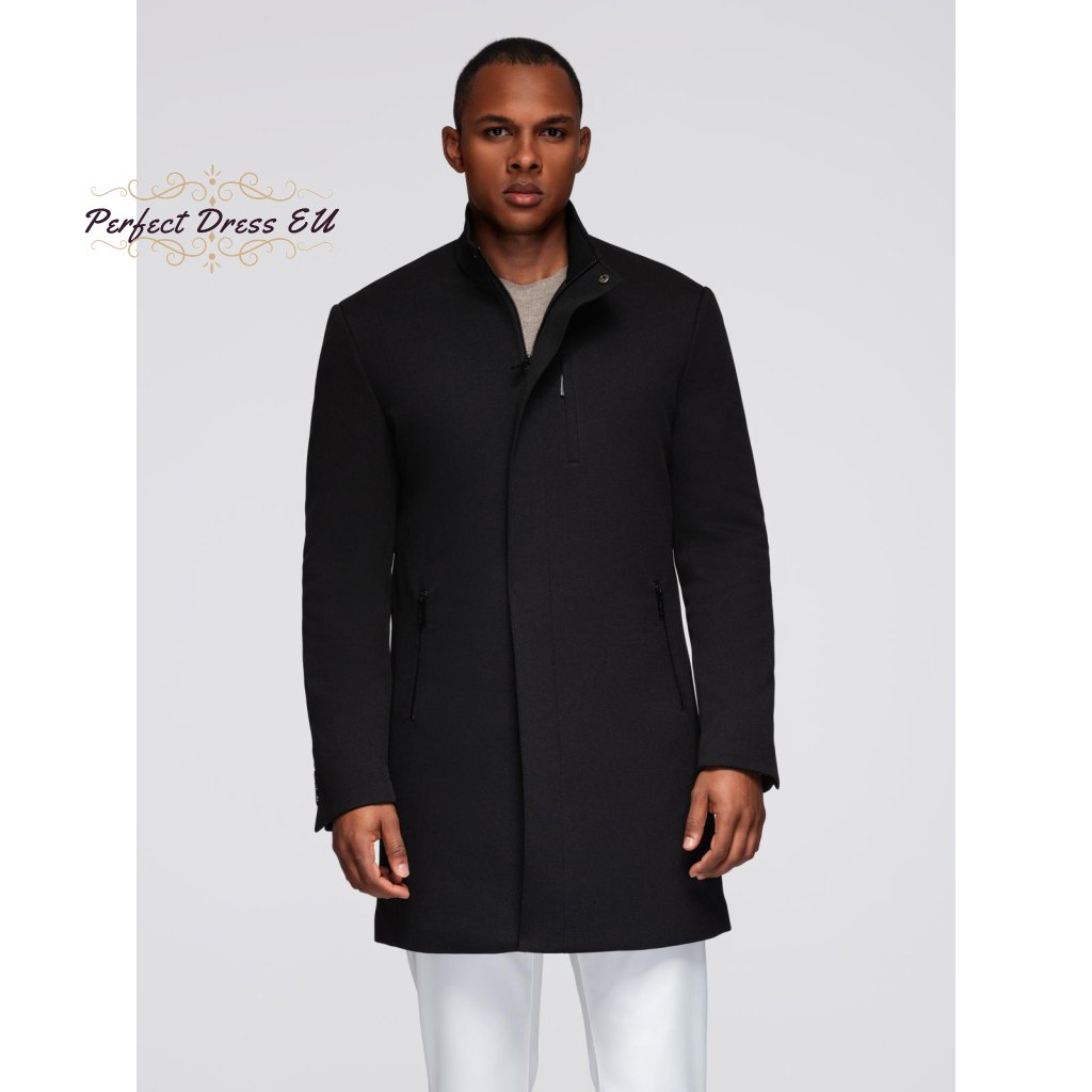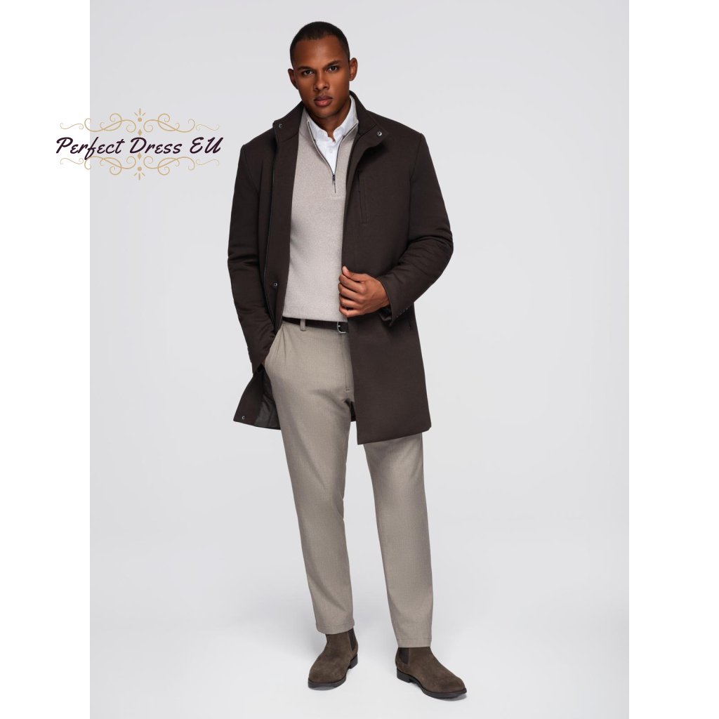 Pánský kabát se strukturovaným vzhledem a stojáčkem V1 OM-COWC-0136