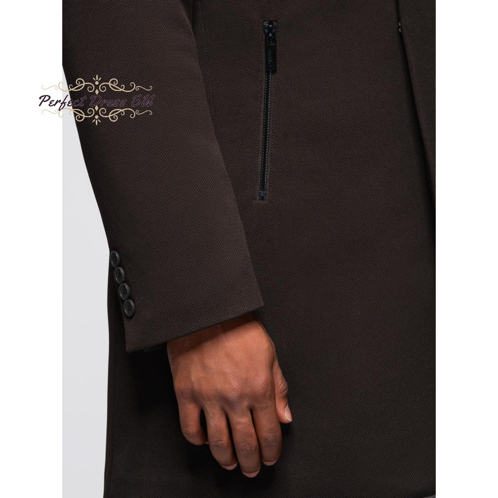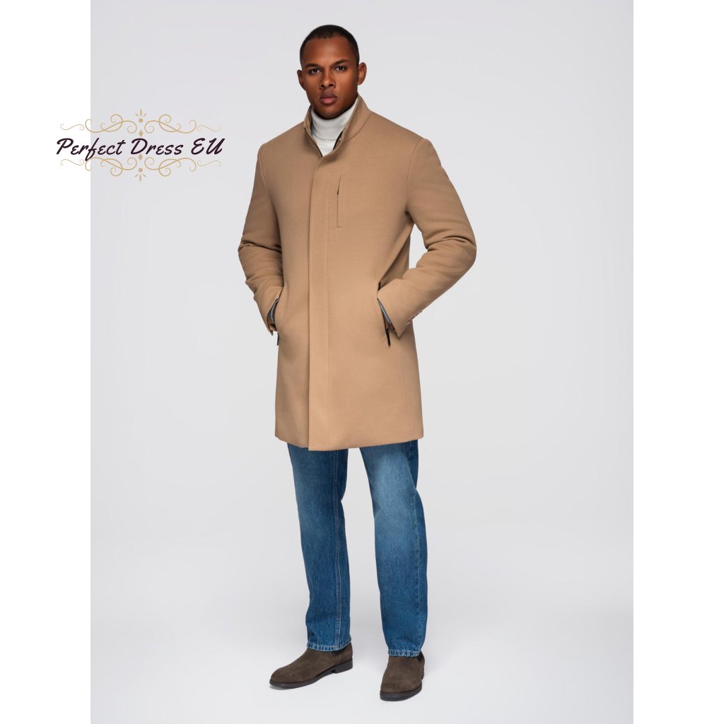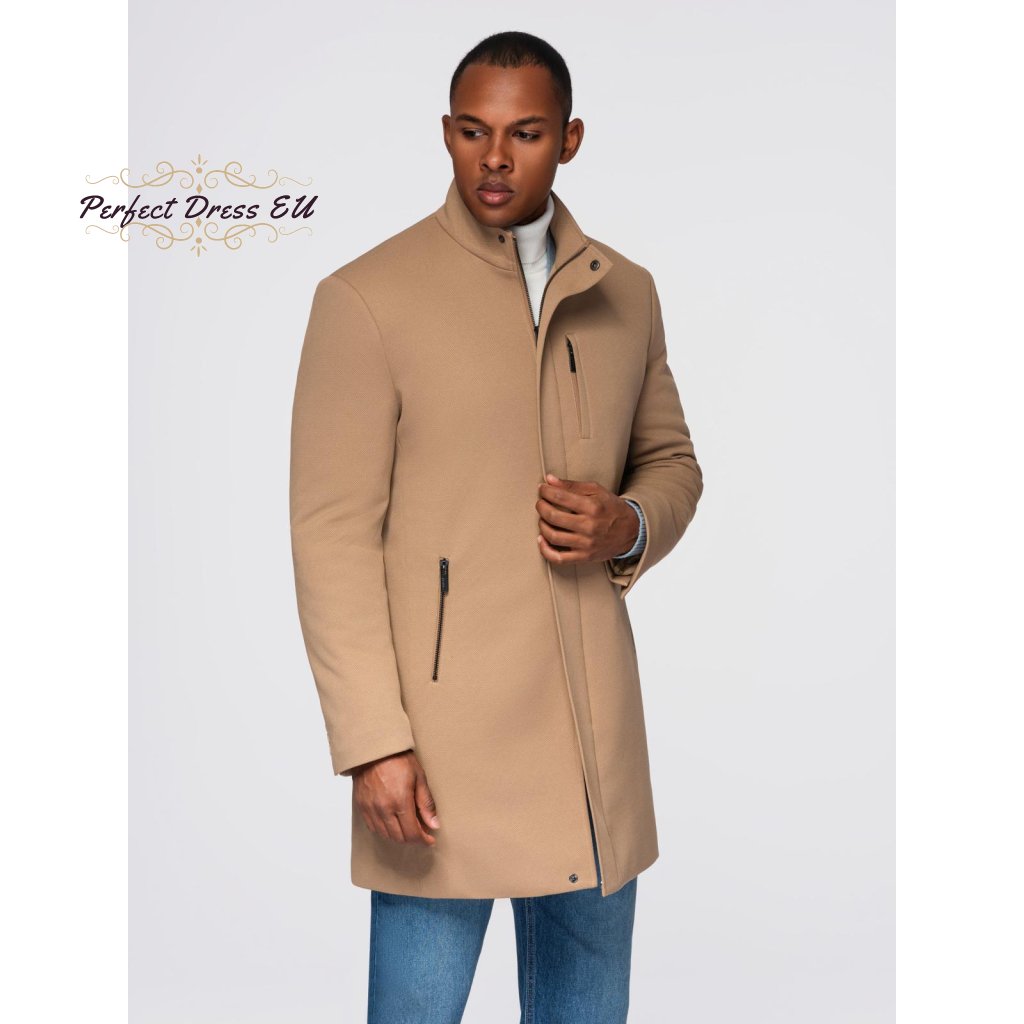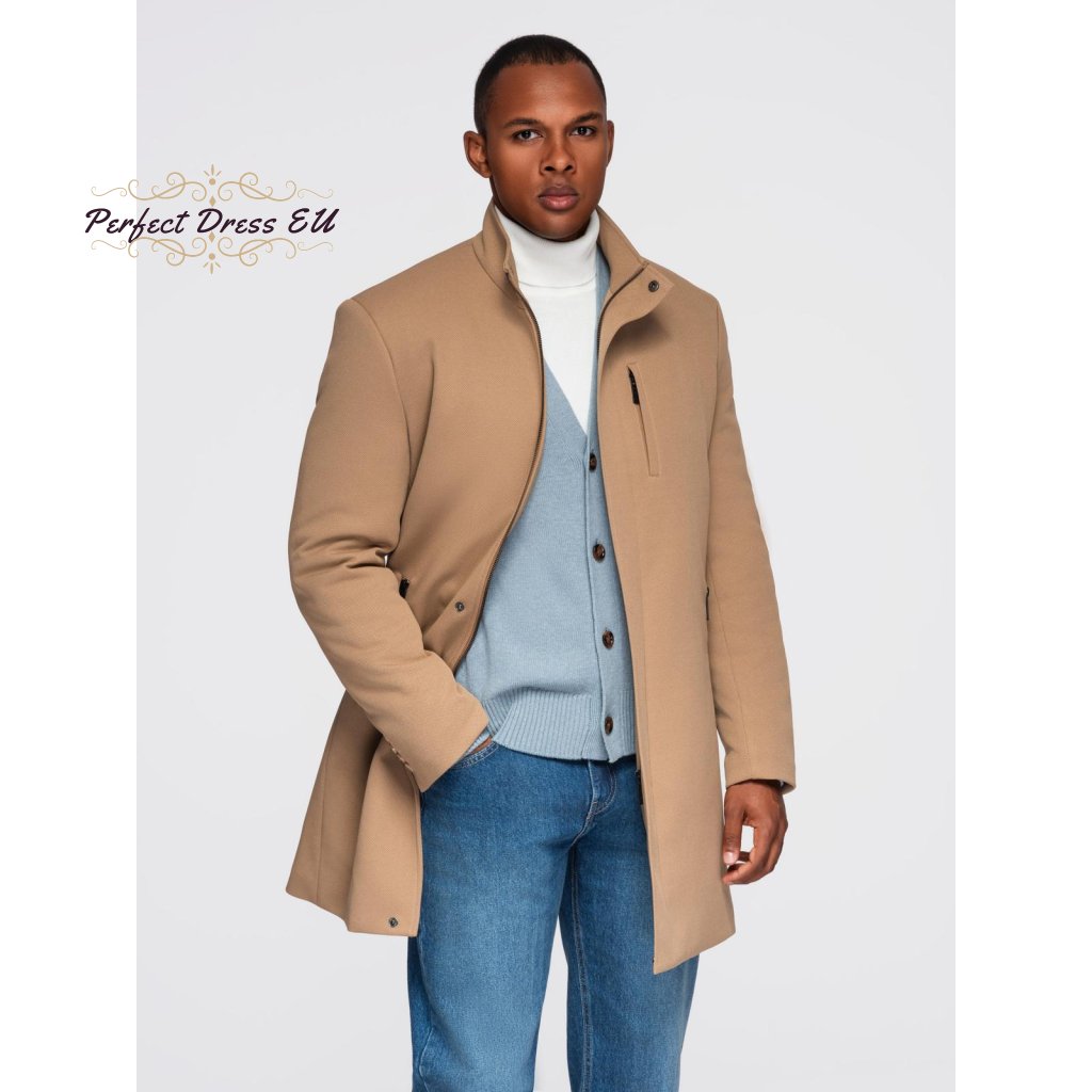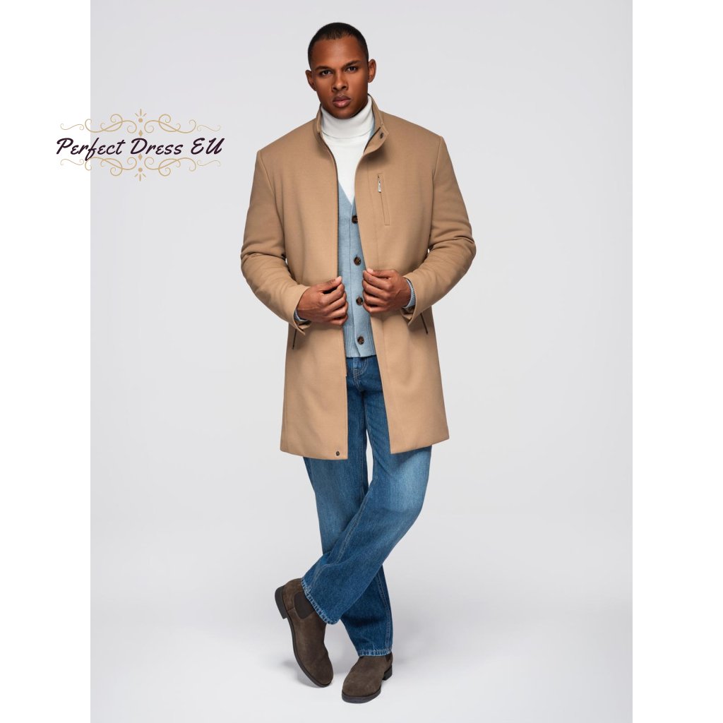 Pánský kabát se strukturovaným vzhledem a stojáčkem V1 OM-COWC-0136