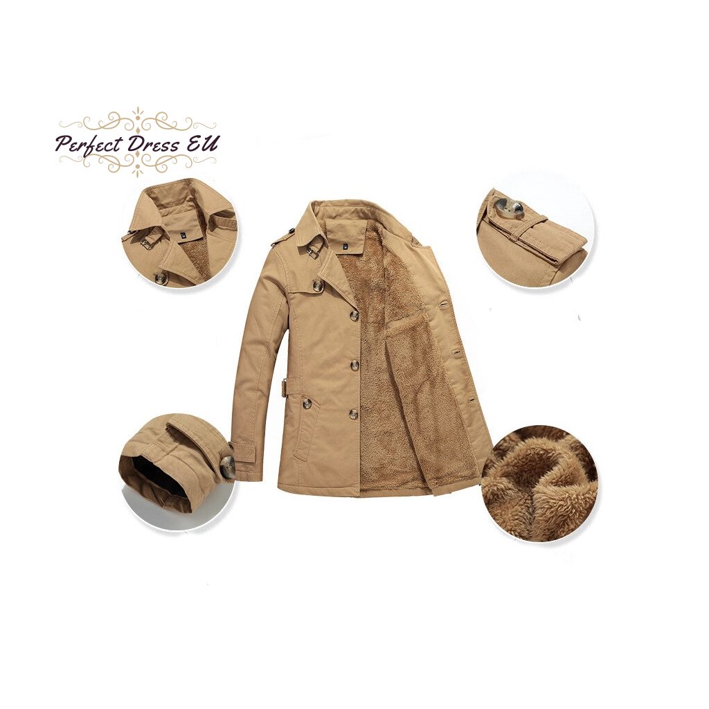 Pánský trenč na zimu kabát s knoflíky a fleecovou podšívkou.Doplňkové parametry