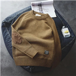 Pánský svetr s kulatým výstřihem a žebrovanými rukávy