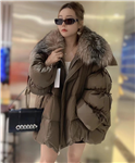 Péřová zimní bunda plněná husím peřím s kožešinou lišky