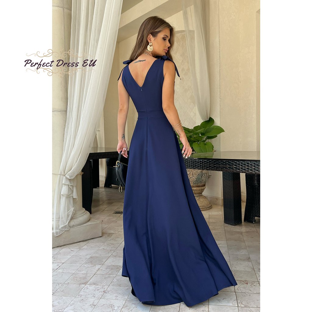 Společenské šaty s mašlemi na ramenou, EU výrobce - Modré