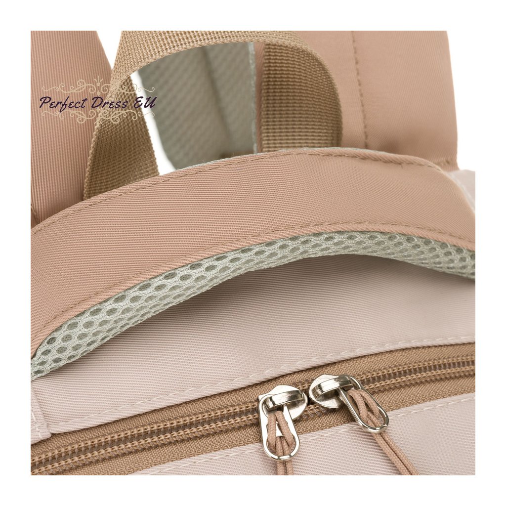 - Na zadní straně batohu je praktický popruh , který umožňuje připevnit batoh k rukojeti kufru – ideální řešení na cestování.
