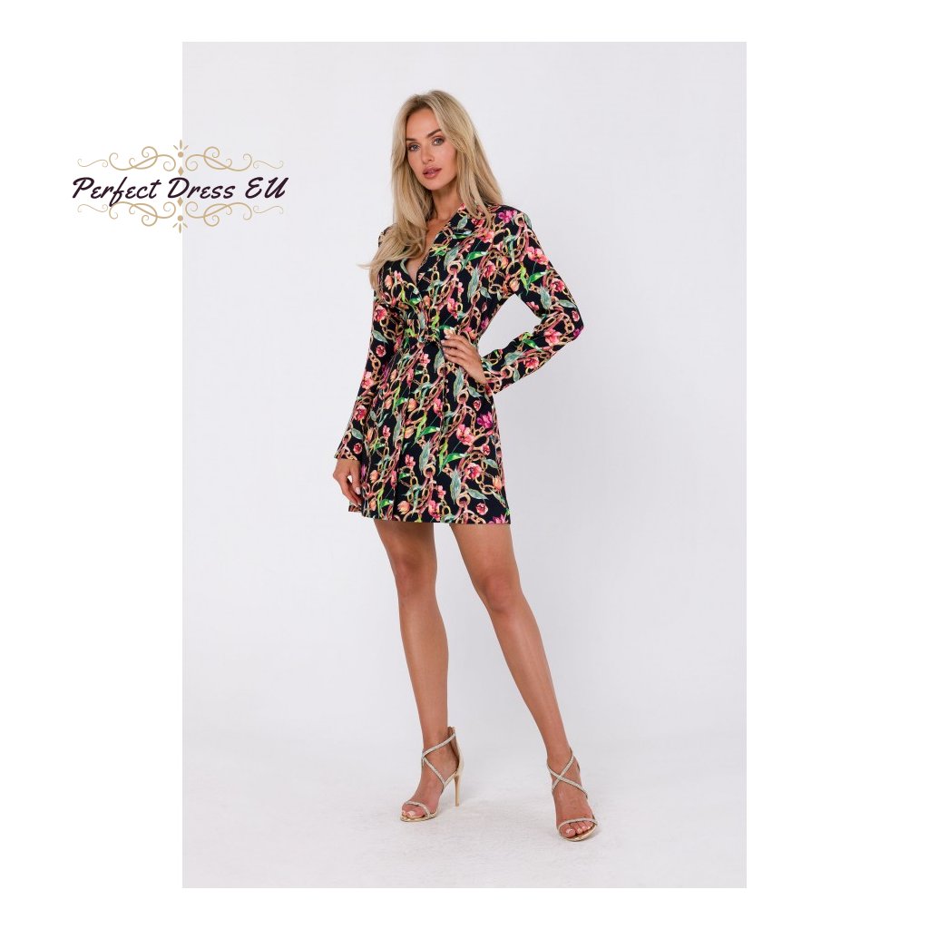 Potištěné blejzrové šaty s páskem M750