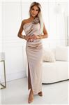 Šifonové Maxi večerní šaty na jedno rameno s lucernovými rukávy