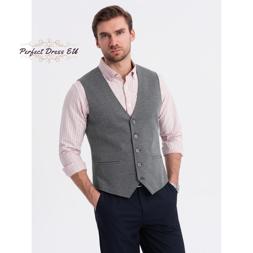 Přiléhavá elegantní pánská vesta ze strukturovaného úpletu - V1 OM-BLZV-0147