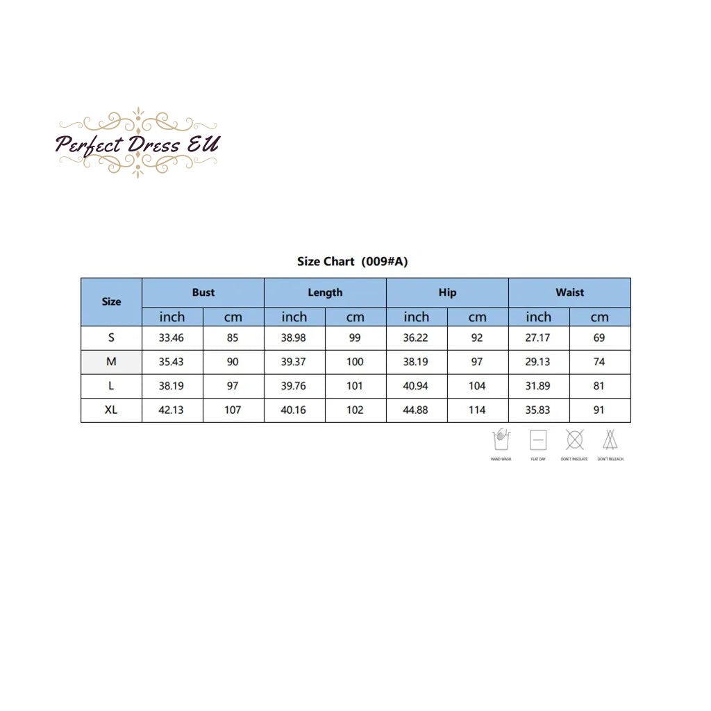 Přibližná velikostní tabulka na šaty (evropské velikosti):XS: hrudník 78-82 cm, pas 60-64 cm, boky 84-88 cm