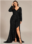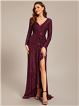 lesklé dlouhé šaty s výstřihem a dlouhými rukávy 572-1 NELA