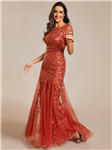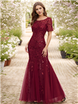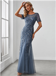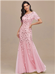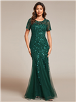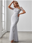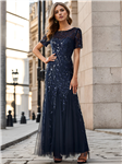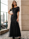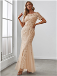 Dlouhé třpytivé šaty flitrované s krátkými rukávy