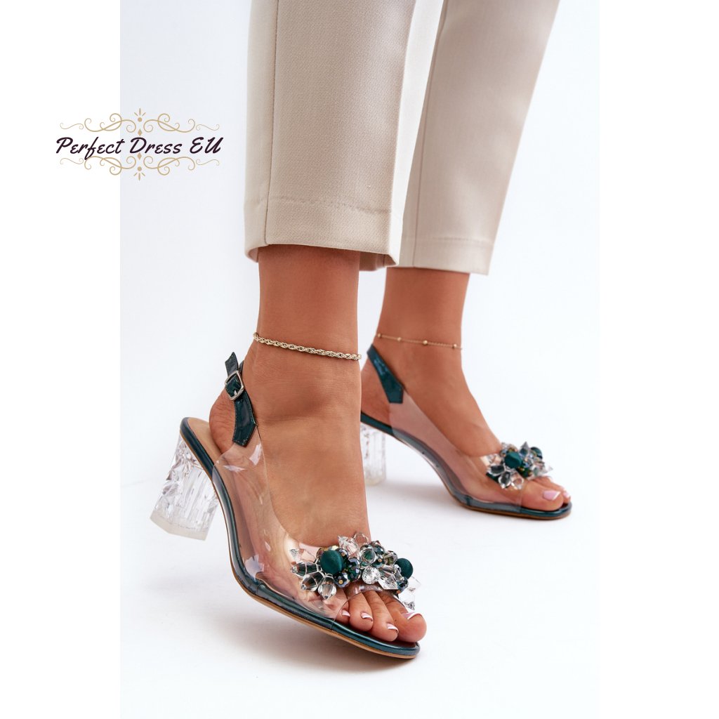 Průhledné sandály na podpatku s ozdobami D&A MR38-D1