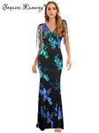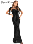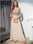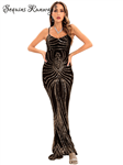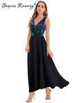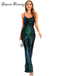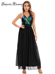 Flitrové midi plesové šaty na párty bez rukávů s výstřihem a síťkou