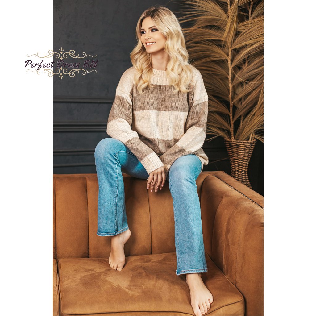 Volný prolamovaný svetr oversize s výstřihem 30076