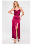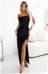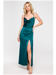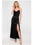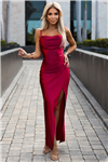 Dlouhé saténové šaty na ramínka s rozparkem na noze